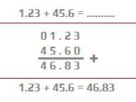 Seperti terlihat pada image diatas, Penjumlahan atau pengurangan bilangan pecahan desimal dengan bilangan bulat akan lebih mudah bila dilakukan dengan cara penjumlahan atau pengurangan bersusun kebawah.